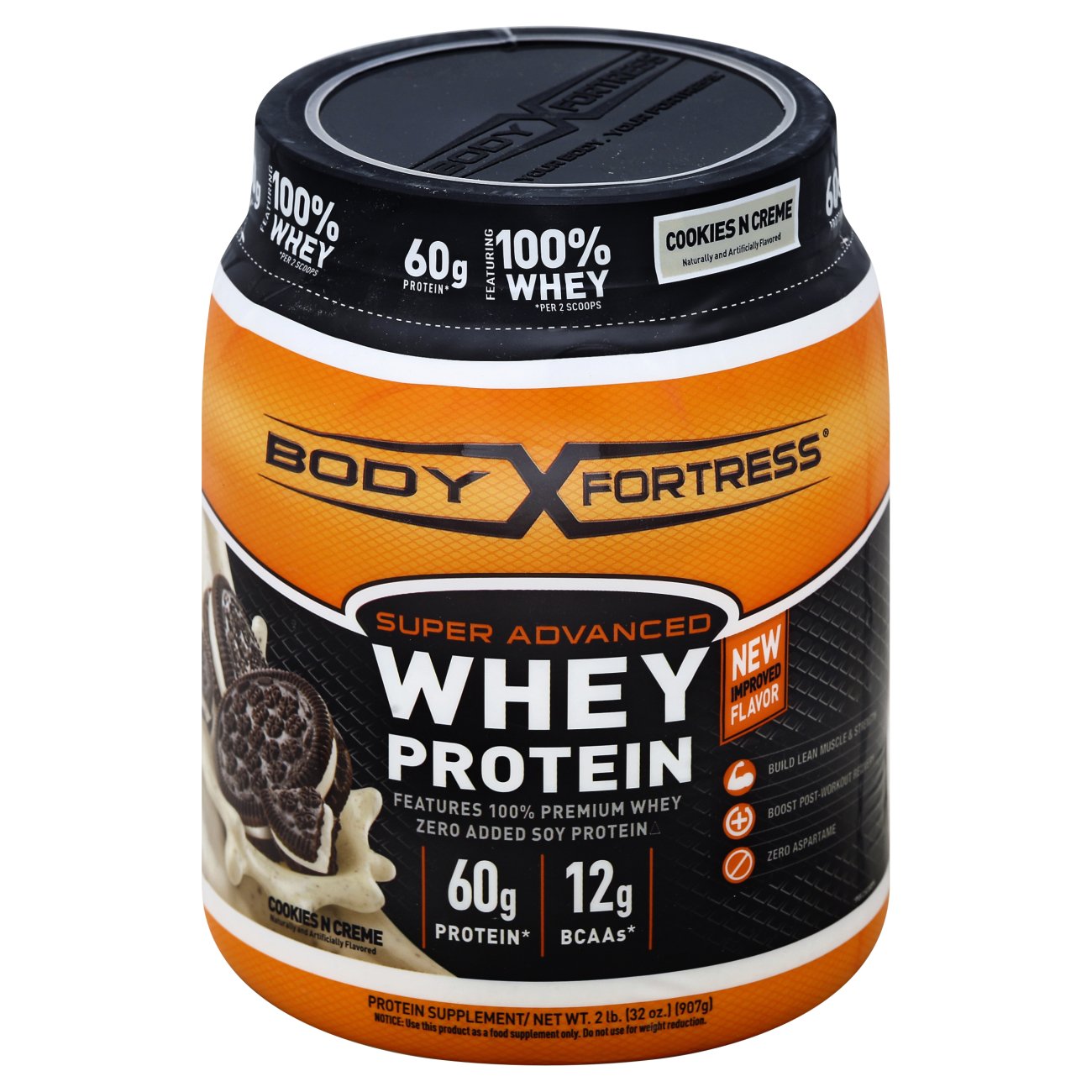 Body Fortress Whey Protein Powder 5 lb, Cookies n Creme Body Fortress Super Advanced Whey Protein is the ideal post workout protein supplement featuring 100 percent Premium whey enhanced with Creatine and other critical amino acids. For adults, add one (1) scoop to 6 8 ounces or two (2) scoops to 14 16 ounces of your favorite beverage. Consume within 10 minutes after mixing.