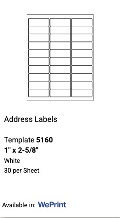 Labels similar to Avery® 5160 - Label Outfitters There are some excellent alternatives to the Avery® 5160 template like the Label Outfitters® Blank Laser and Inkjet Printable 2-5/8 x 1-inch Labels or the 2-5/8" by 1-inch labels that still give you the bit of panache in style and design options. These mailing label solutions can even come with a preprinted decorative image on it.
