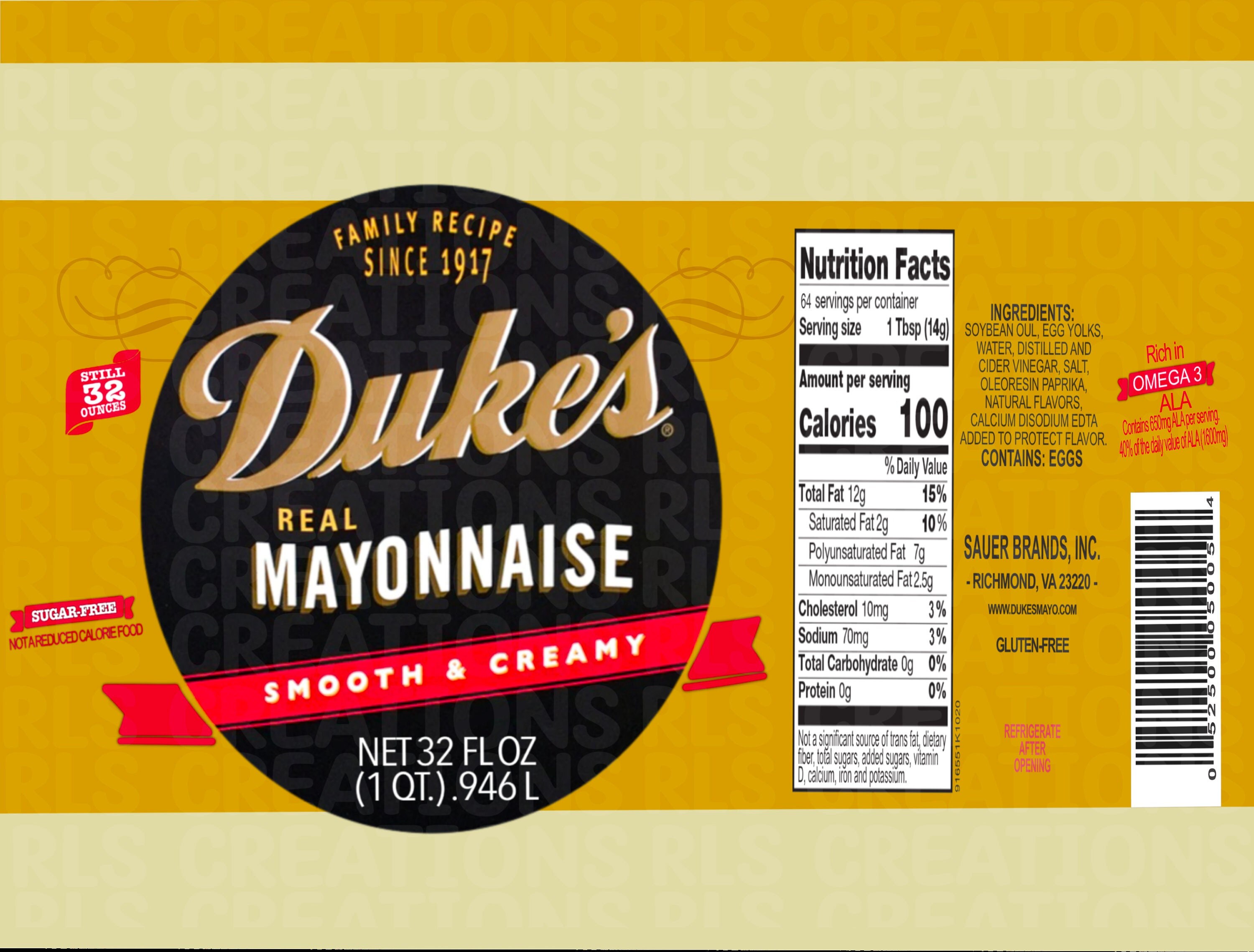 Duke's mayonnaise nutrition label