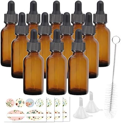 12 Pack 30 ml 1 oz Amber Glass Bottles with Glass Droppers and Black cap.Glass Dropper Bottles for Essential Oils,Lab ...