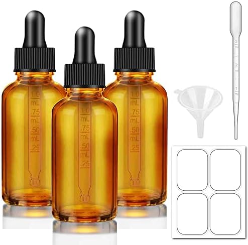Dropper Bottle 1 oz, Bumobum Amber Glass Eye Dropper Bottles for Essential Oils with Labels and Funnel, 3 pack Tincture Bottle 30 ml with Measured ...