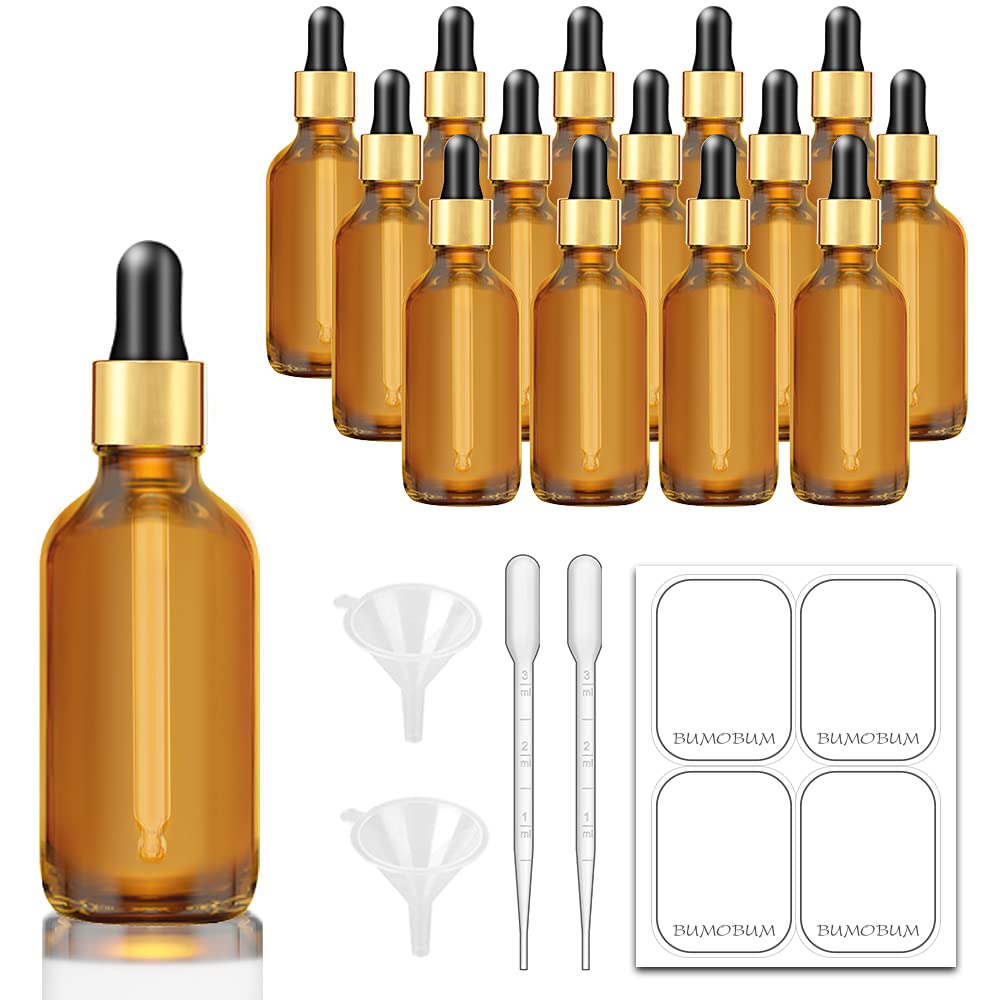 Eye Dropper Bottle 1 oz (24 Pack Amber Glass Bottles 30ml with Golden Caps, 48 Labels, Funnel & Measured Pipettes) Empty Tincture Bottles for ...