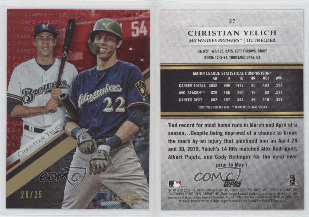 2019 Topps Gold Label Class 3 Red /25 Christian Yelich #37