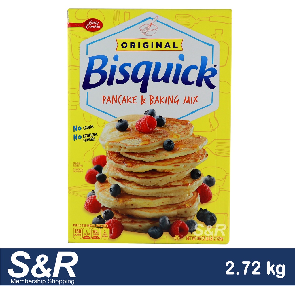 Bisquick™ Original Pancake & Baking Mix - BettyCrocker.com Nutrition Facts Prep Instructions 1 STIR ingredients until blended. 2 POUR slightly less than 1/4 cupfuls onto hot greased griddle. 3 COOK until edges are dry; about 1 minute 30 seconds. Turn; cook 1 minute 30 seconds or until golden. The Ultimate Pancake Just add the following ingredients to Step 1 of our Classic Pancakes recipe 3 tbsp sugar