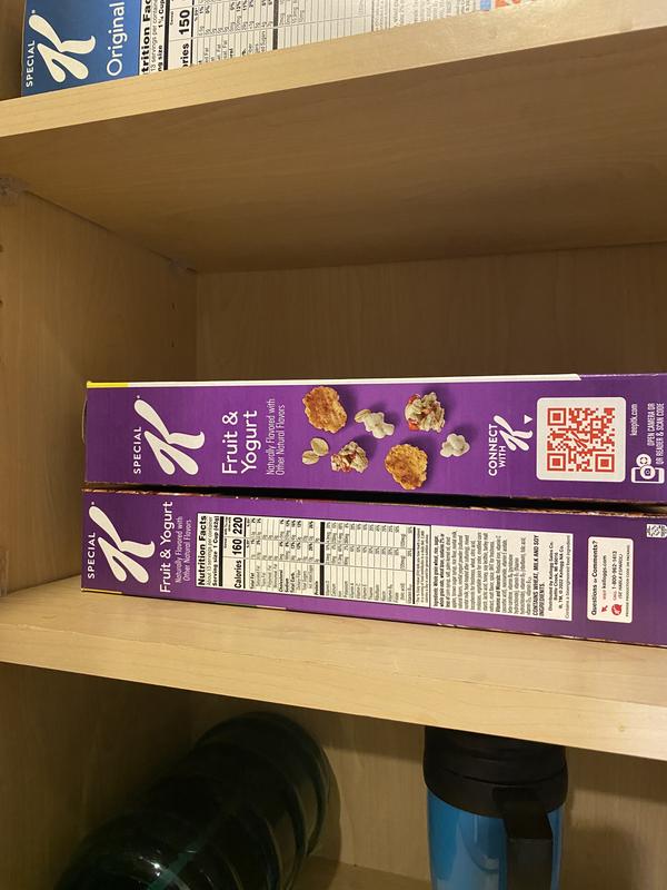 Special k, fruit & yogurt cereal by The Kellogg Company nutrition facts ... Special k, fruit & yogurt cereal by The Kellogg Company contains 120 calories per 32 g serving. This serving contains 1 g of fat, 2 g of protein and 27 g of carbohydrate. The latter is 10 g sugar and 3 g of dietary fiber, the rest is complex carbohydrate. Fruit & Yogurt Cereal | Special K® Ingredients: Whole grain wheat, rice, sugar, whole grain oats, wheat bran, contains 2% or less of corn syrup, salt, palm kernel oil, dried apples, brown sugar syrup, rice flour, nonfat milk, natural flavors, nonfat yogurt powder (cultured nonfat milk; heat-treated after culturing), mixed tocopherols for freshness, wheat, citric acid, molasses, … Kellogg's® Special K® Fruit & Yogurt Cereal - SmartLabel™ Kellogg's® Special K® Fruit & Yogurt Cereal. 19.1 oz. 00038000143656. Nutrition . Ingredients . Allergens . Features & Benefits . Company, Brand & Sustainability . 160. Calories. 0.5 g. Sat Fat. 190 mg. Sodium. 13 g. Sugar. Nutrition Facts. Servings Per Container About 13. Serving Size 1 Cup (42 g) Amount Per Serving Cereal with 3/4 cup skim ... Special K® Cereal and Bars | Special K® Special K ® knows the secret to creating the tastiest food is using the ingredients you know and love. Discover all the flavors and find your new favorite. MY FAVE OUR FAVE KID'S FAVE Family Approved Shop Now Taste Variety Because it's breakfast time somewhere … Buy Now Our Products Cereal